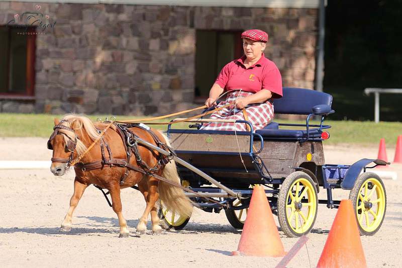 Die selbstgezogene "Hodessa von Repgow", dreijährig, hatte es auf dem Sandplatz nicht einfach. So wie ich es von meinen Ponys gewöhnt bin: Sie gab wieder ALLES! Das Ergebnis war geringfügig niedriger mit 8,0!