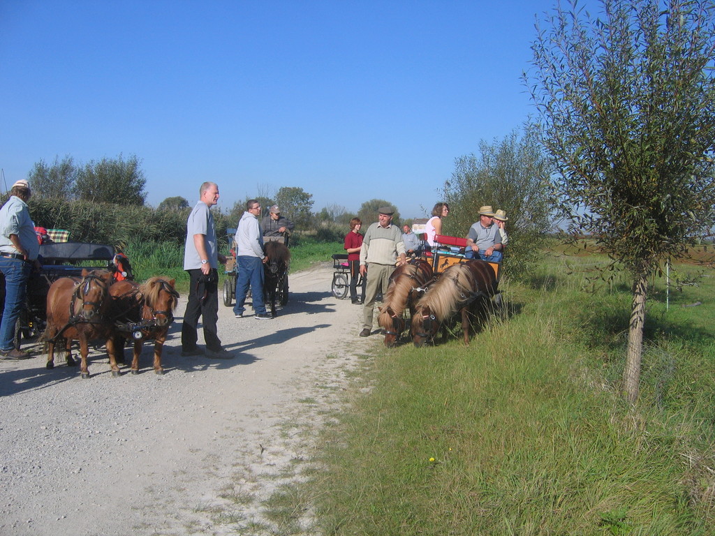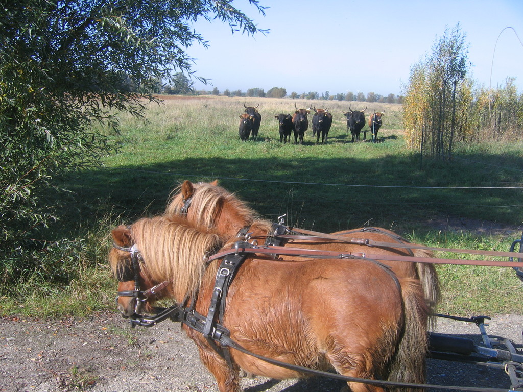 Am 1. Oktober unternahm unser Ponyverein eine Ausfahrt in ein örtliches Naturschutzgebiet, das "Wulfener Bruch". Es war das herrlichste Spätsommerwetter. Wir fuhren mit unserer Kutsche mit, insgesamt waren wir 7 Kutschen. Unter fachkundiger Leitung besichtigten wir die hier lebenden Heckrinder, das Prezewalski Pferd, das Konikpferd und das Exmoorpony. Es war einfach herrlich.