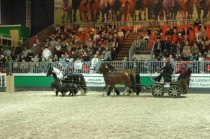 Großer Showauftritt bei der Sommernachtsshow der Pferde in Dessau/ Mosigkau mit dem Vierspänner (Halinka, Hondura, Honda und Reha) und der Dressurkür am langen Zügel mit dem Hengst "Rosso" am 23.7.2011