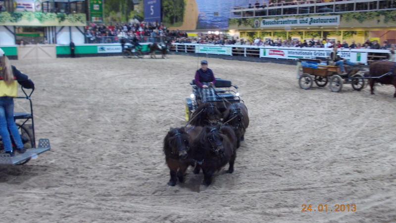 Wir hatten auch 2013 die große Ehre, mit unseren Vierspänner Minishettys uns auf der Grünen Woche in Berlin präsentieren zu dürfen. Eingeladen hatte uns wieder der Pferdezuchtverband Brandenburg- Anhalt. Es waren wunderschöne, anstrengende, stressige Tage.