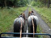 Angespannt sind die Stuten "Regentin von Repgow", "Hondura von Repgow"(Vorderpferde), "Reha von Repgow" und " Hora von Repgow".